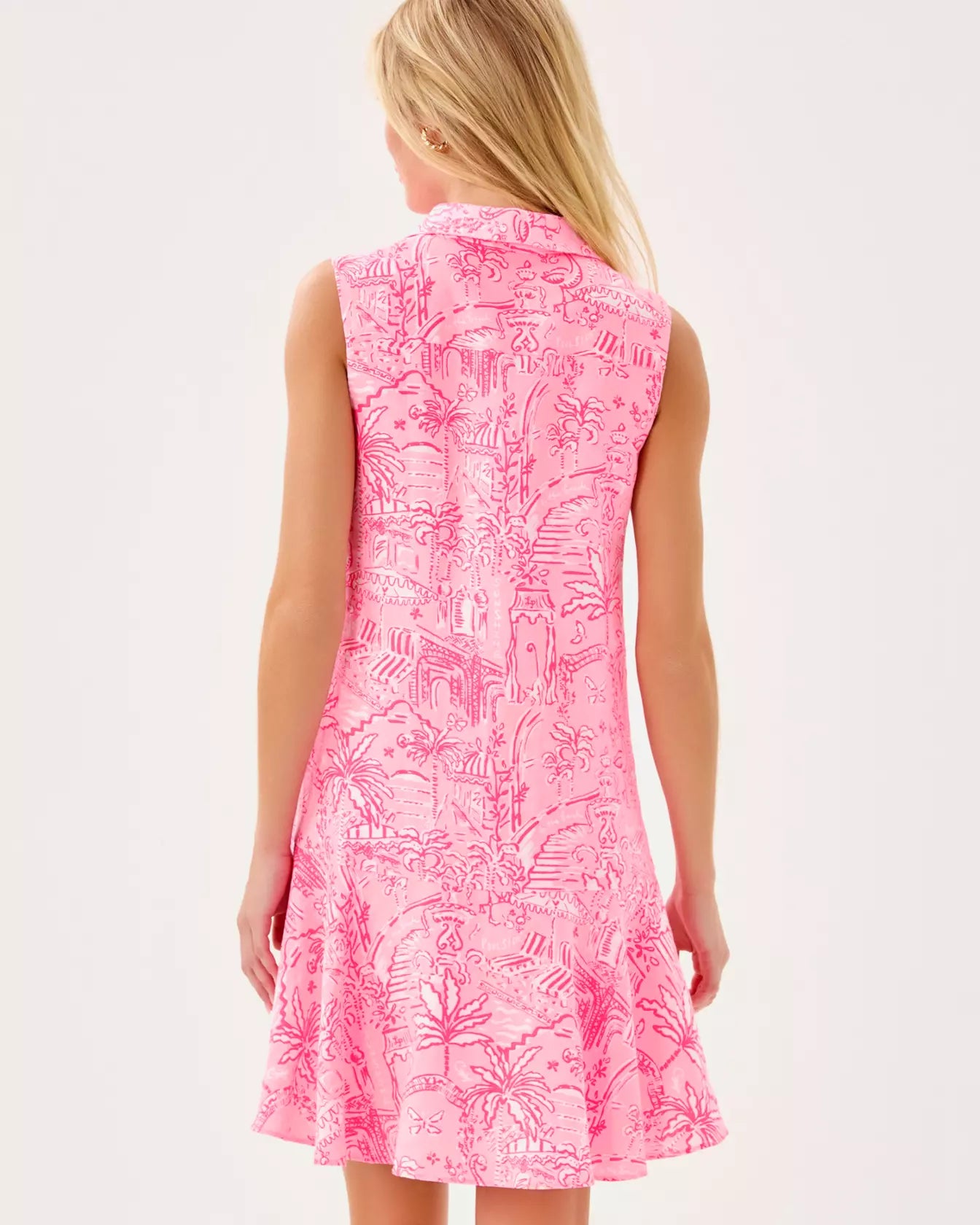- Easy fit, popover shirtdress with a half placket and tall hem flounce.
