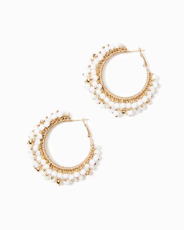Happy Birthday, Lilly! We're celebrating our forever muse with accessories that capture her iconic style and give it a modern twist. Channel the essence of an icon with these hand beaded golden hoop earrings.