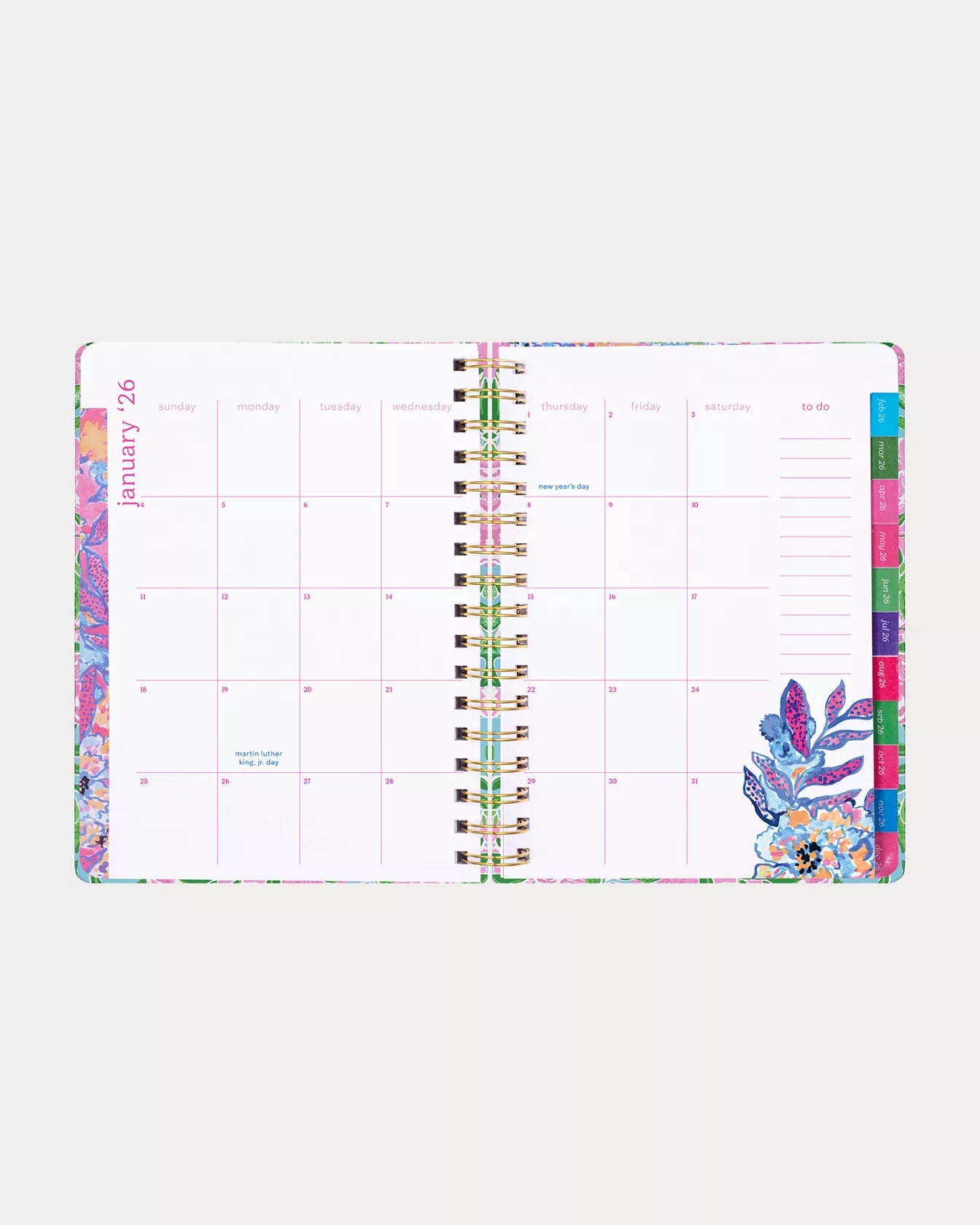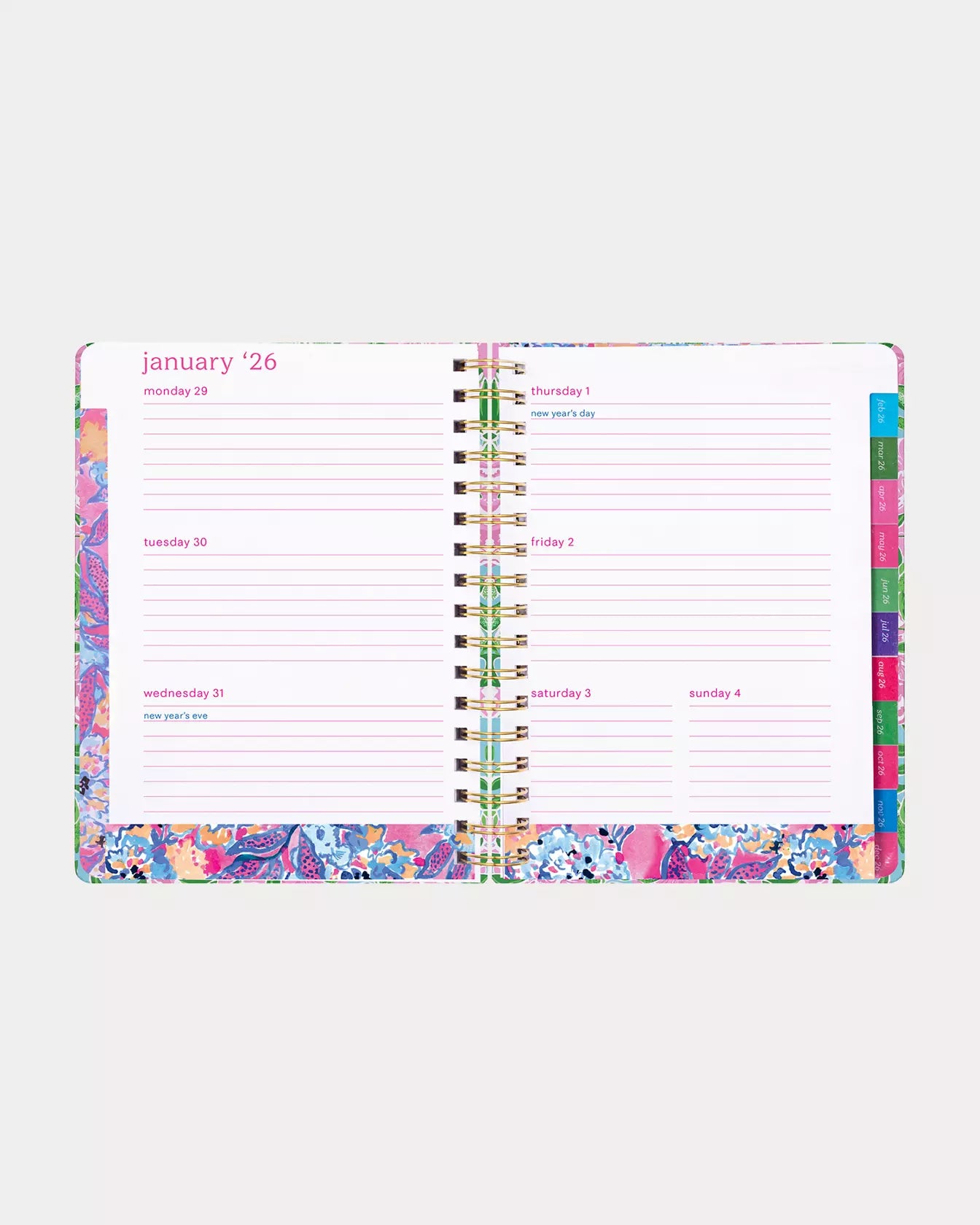 - 17 month jumbo agenda (August 2025 - December 2026) complete with gold details and hand painted interior art.