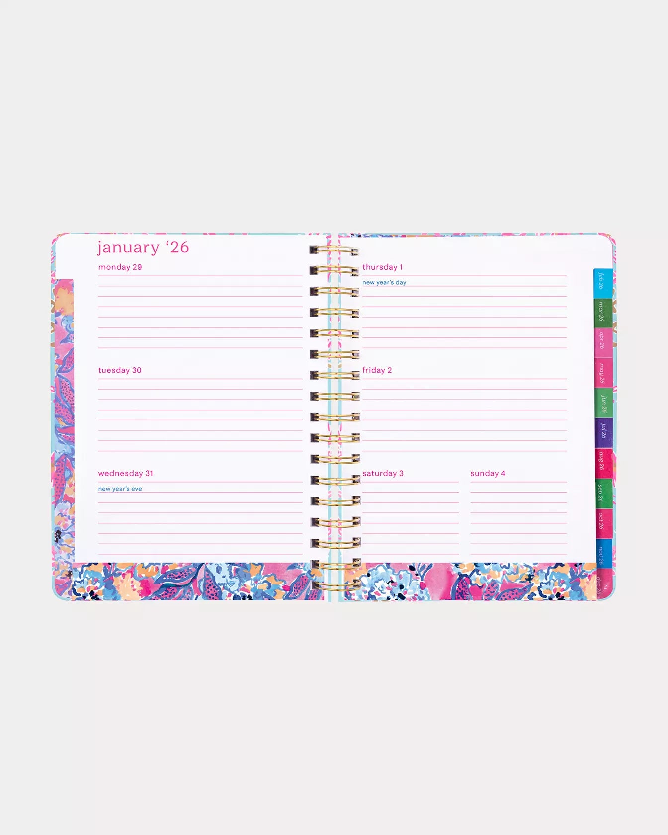 - 17 month large agenda (August 2025 - December 2026) complete with gold details and hand painted interior art.