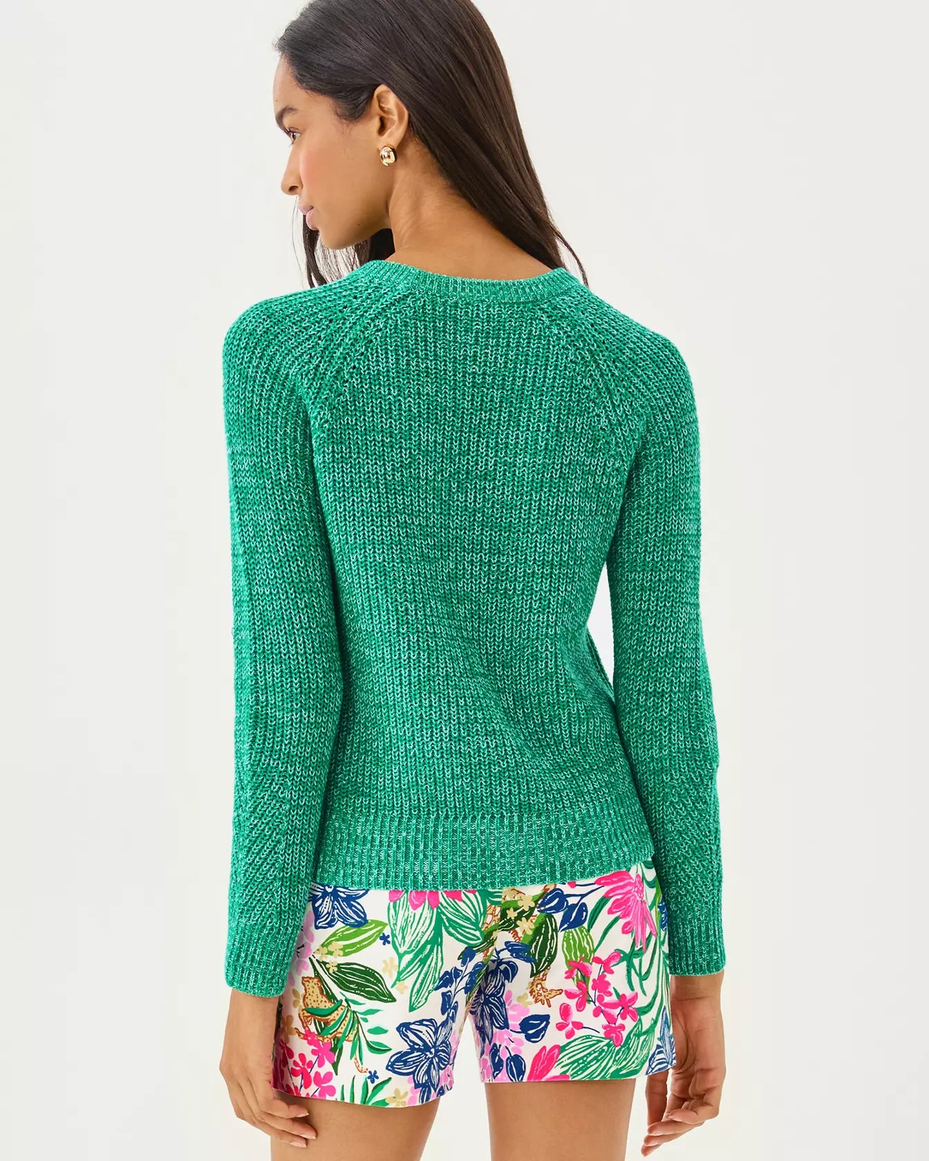 • Easy fit, long sleeve, crew neck sweater with engineered stitches.