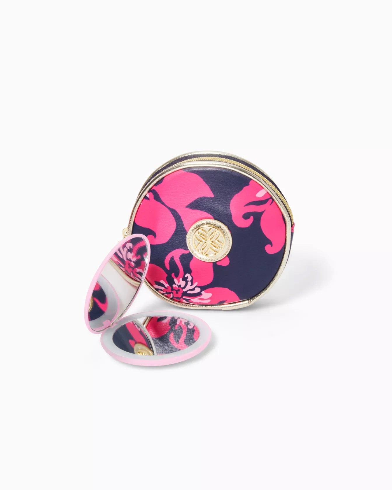 - Compact light up mirror in a printed zip case. Battery not included.