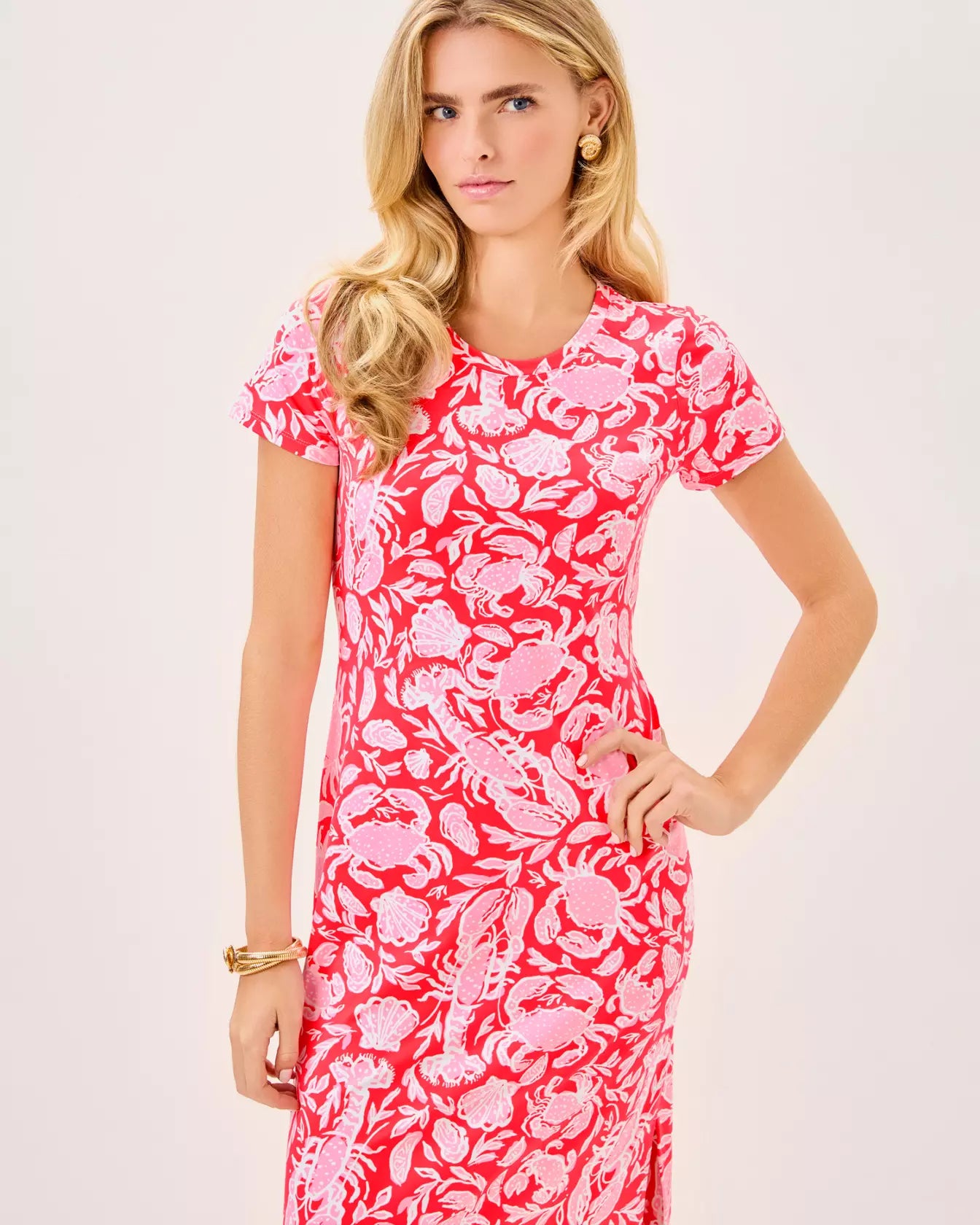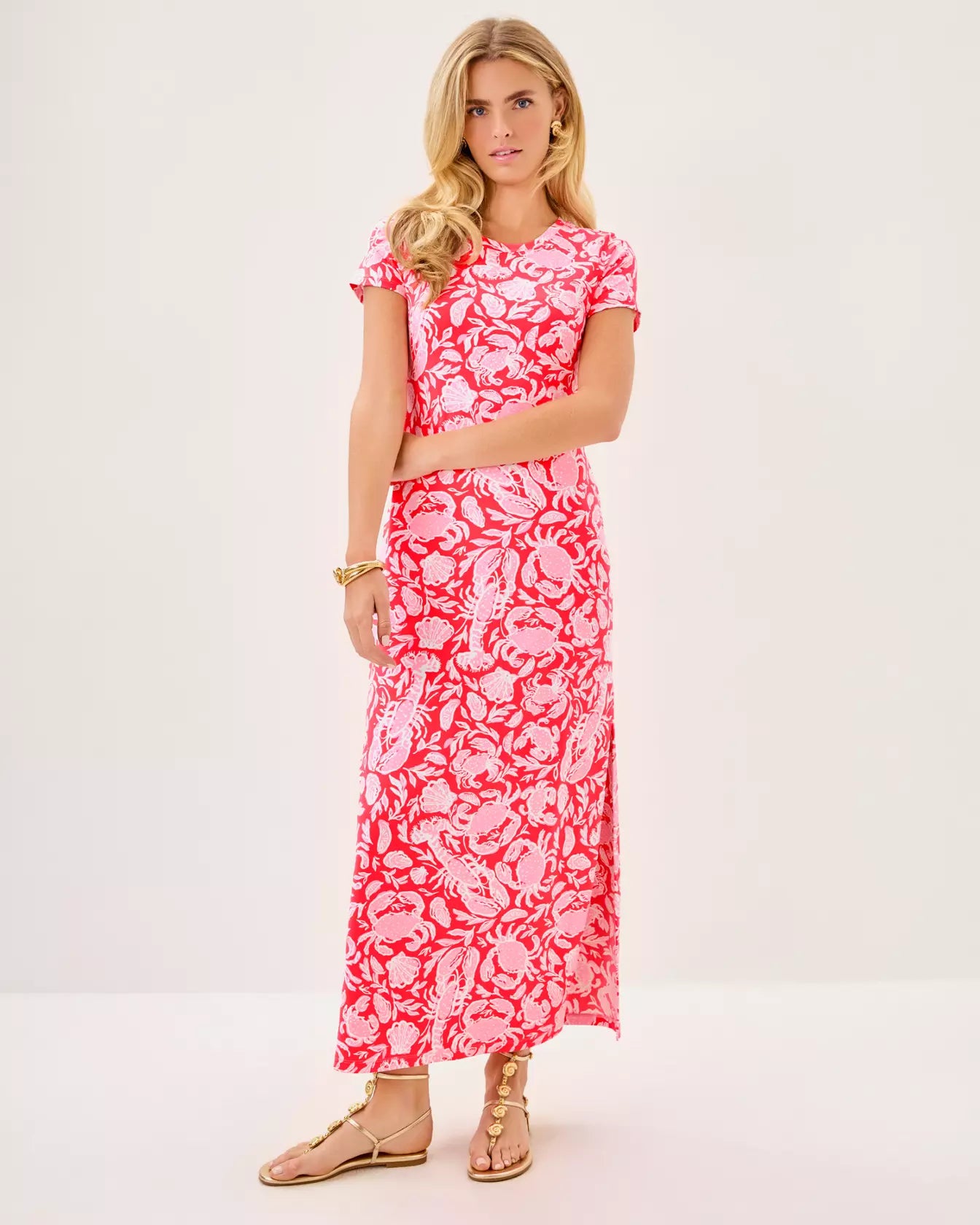 - Straight fit, pullover maxi dress with short sleeves.