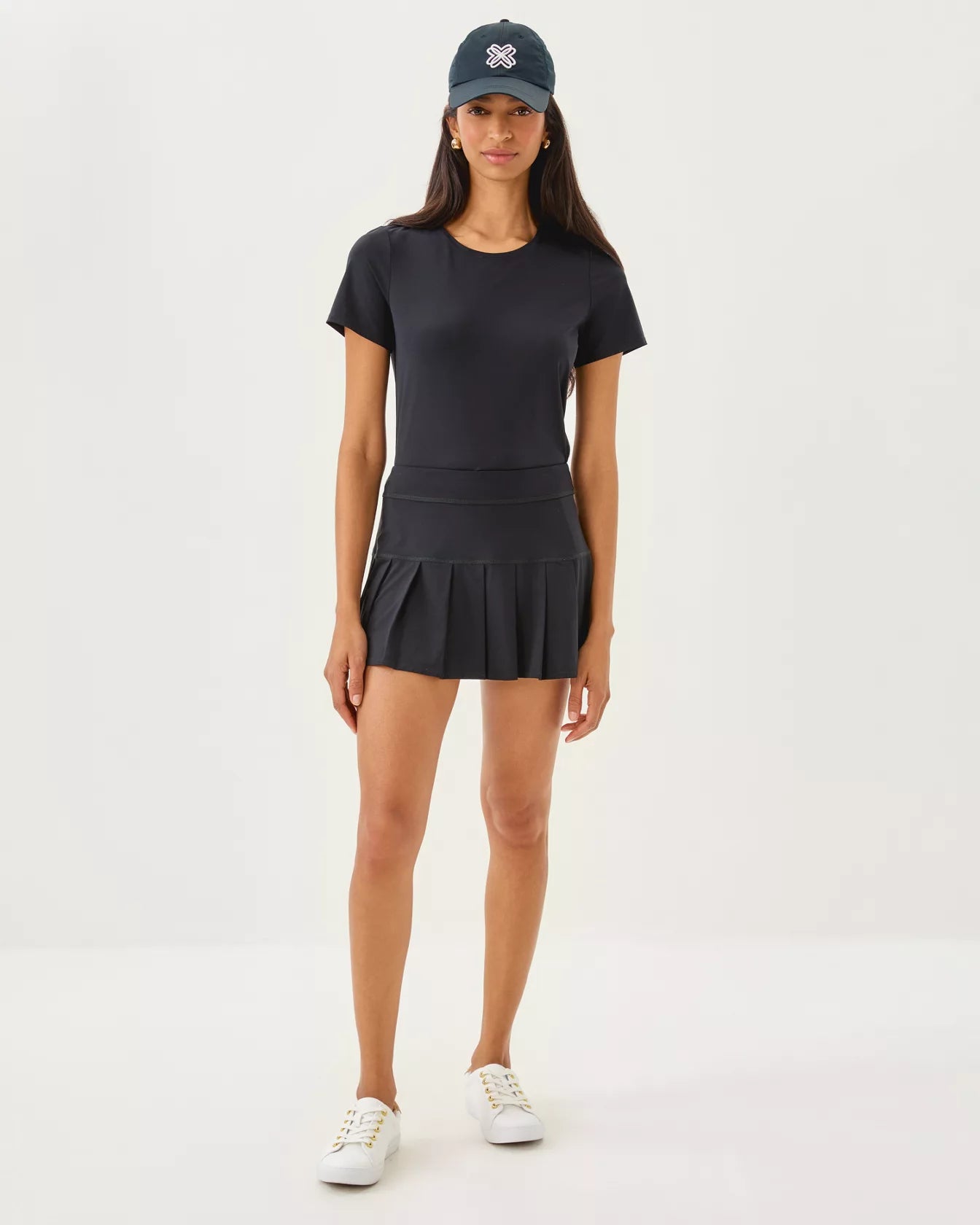 - UPF 50+ Luxletic® active skort with a pleated hem and undershorts with a pocket. Moisture wicking.