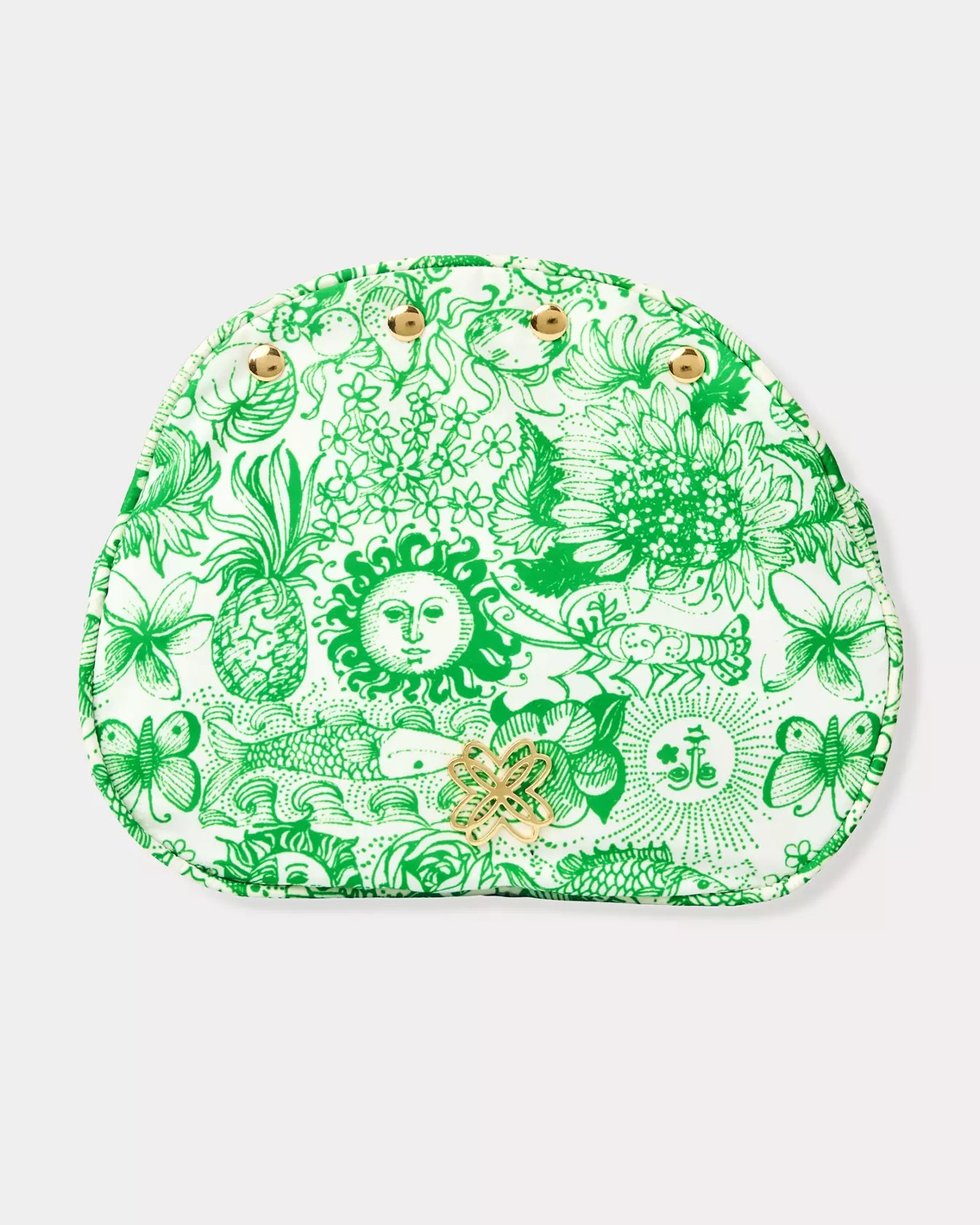 - Printed bermuda bag cover with gold snaps.