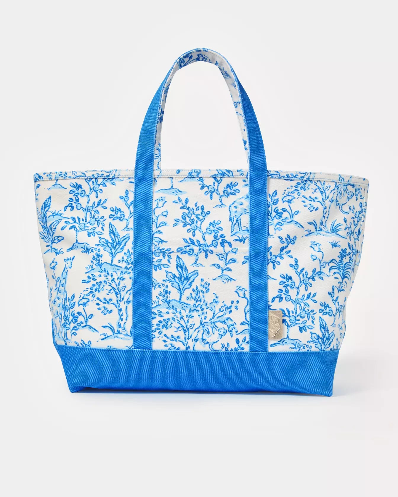 Fill this roomy canvas beach tote with all the essentials for a day of sun, sand, and surf.