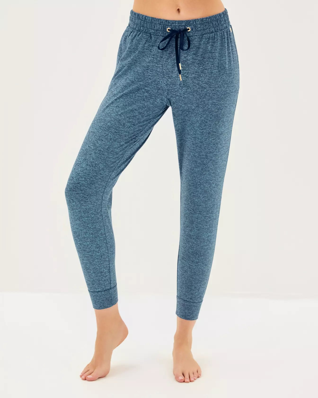 Relax in comfort and style with our Lillabeth Pant, a mid-rise design with a slim fit and pull-on styling. This loungewear essential is made from our Downtime Jersey, a lightweight fabric with a super-soft brushed finish, comfy four-way stretch, and UPF 50+ sun protection.