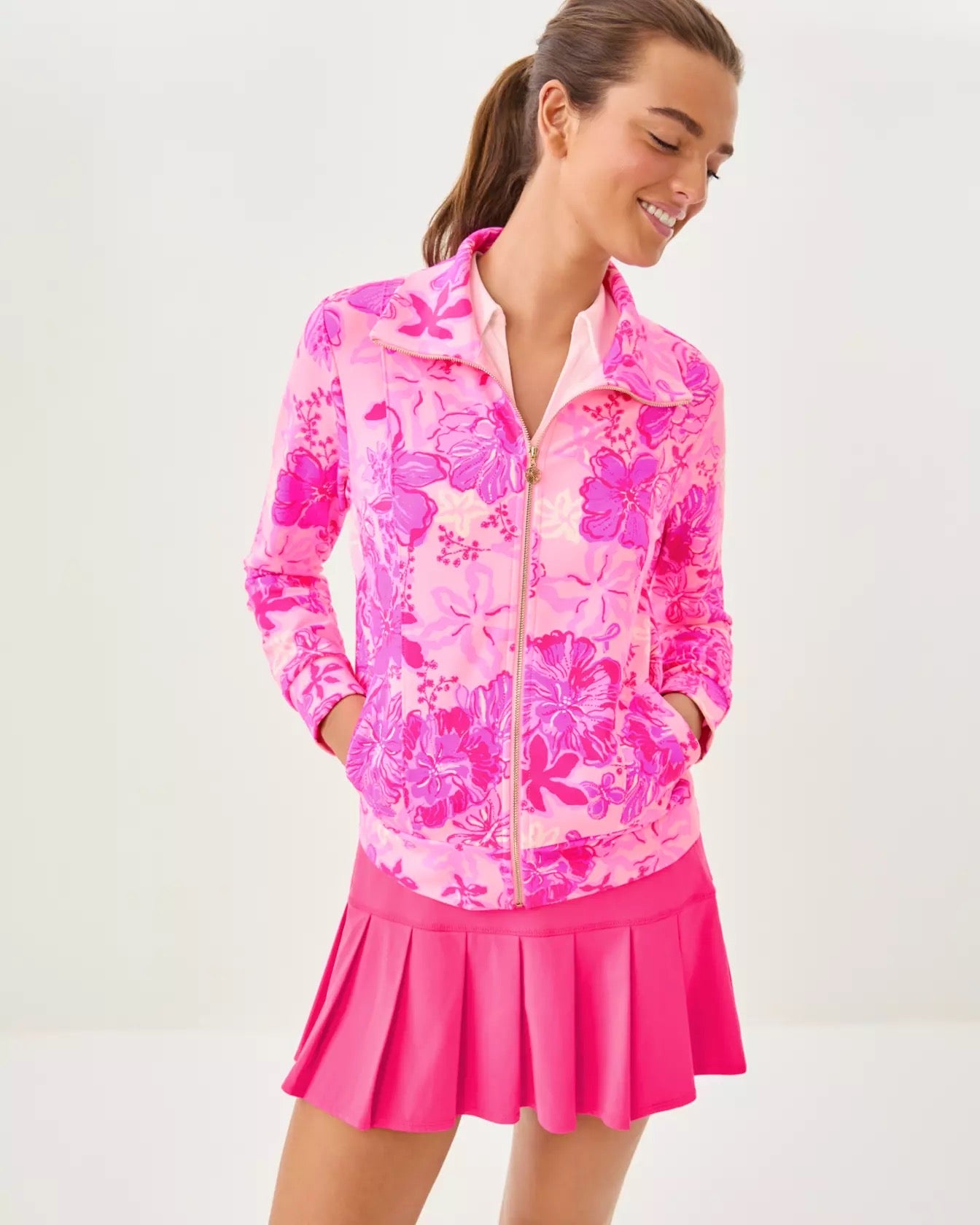 - Easy fit, full-zip jacket with long sleeves, front pockets, and seam detailing.