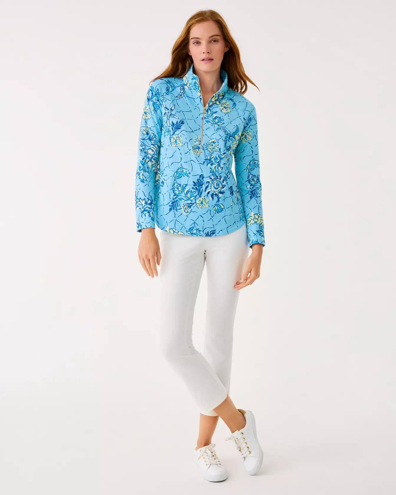 As an activewear staple or layer for brisk mornings, this half-zip pullover packs plenty of versatility. A high neckline keeps the chill at bay while the super-soft Luxe Terry fabric provides exceptional comfort and UPF 50+ sun protection.