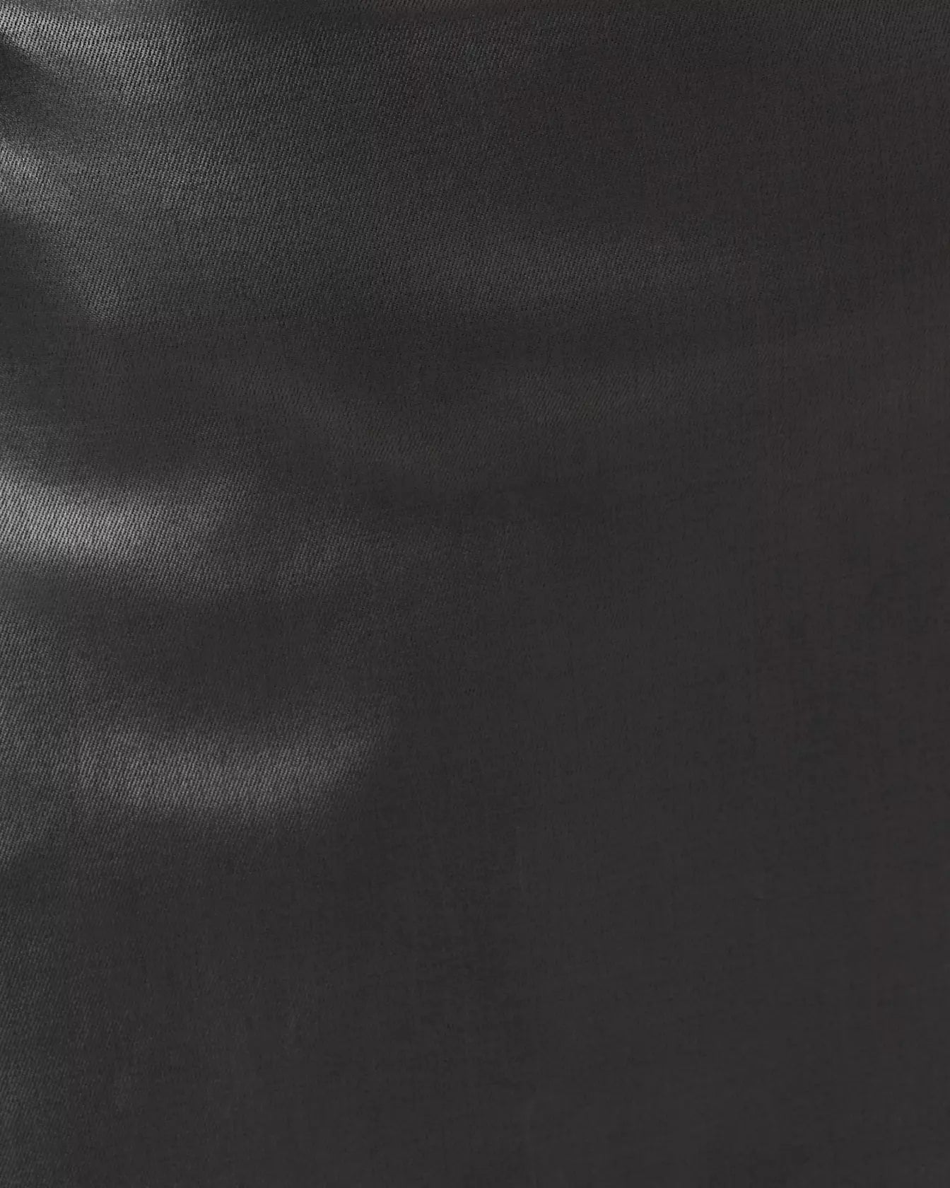 - Black Coated Stretch Denim (59% Rayon, 39% Polyester, 2% Spandex).