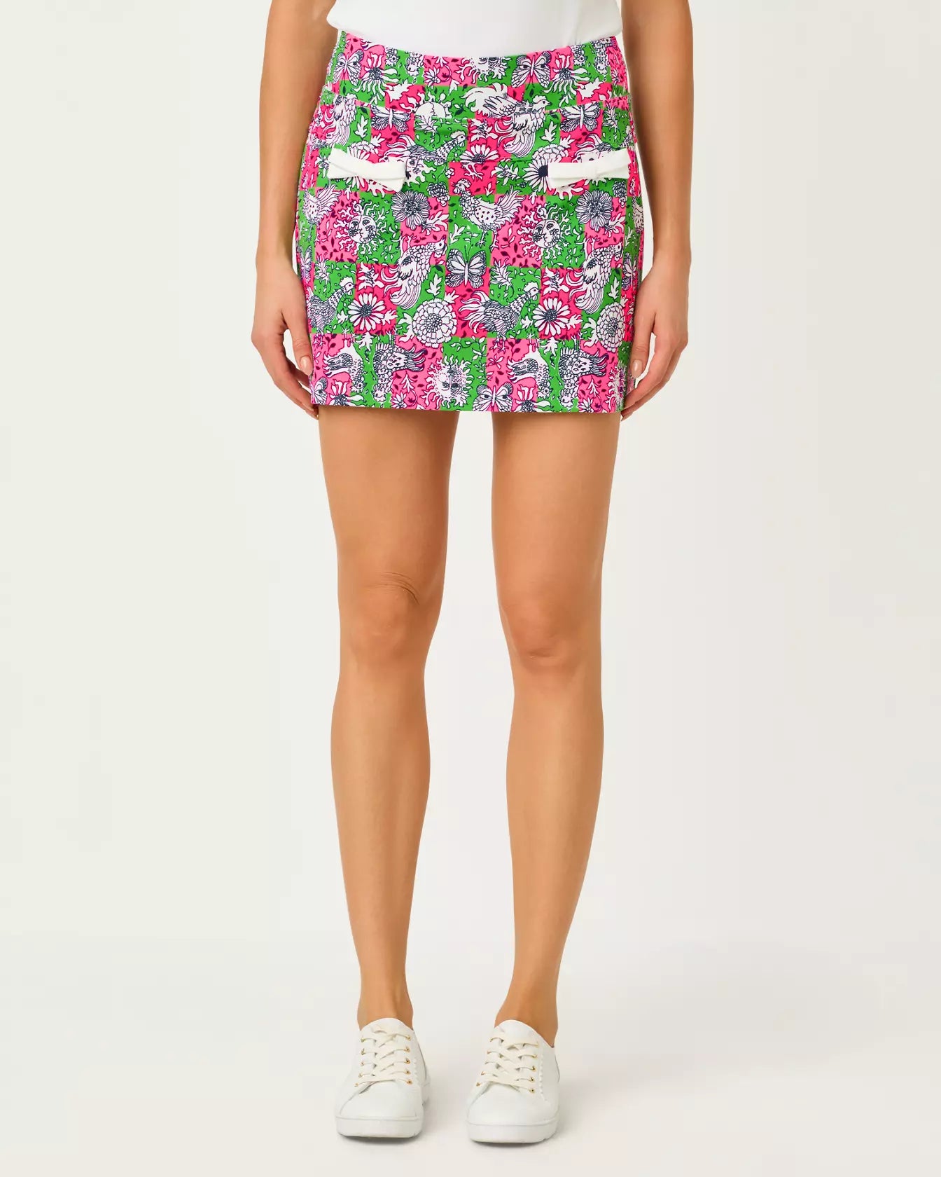 - UPF 50+Luxletic® golf skort with bow details, front pockets, and undershorts with a pocket.