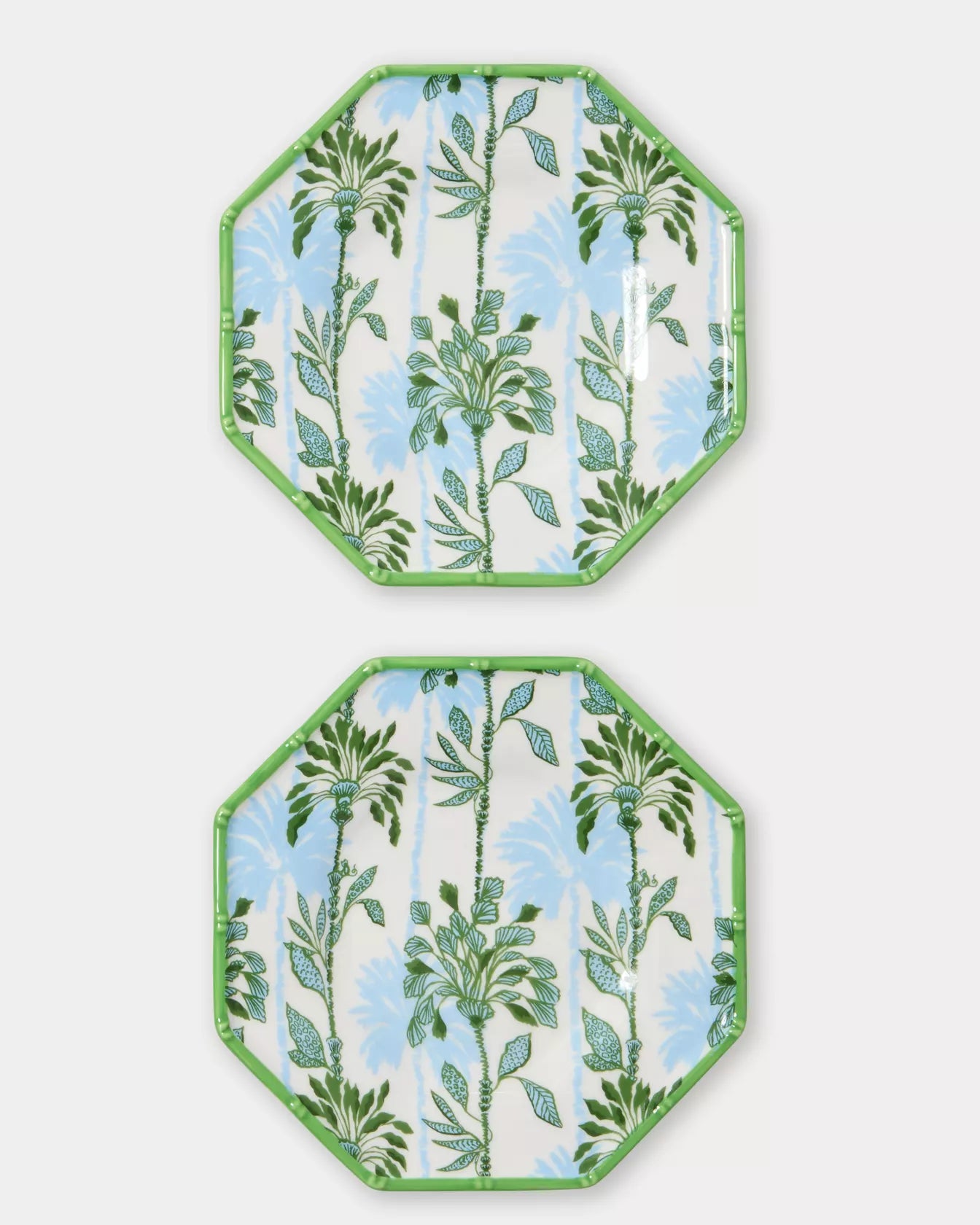 - Set of 2 printed ceramic appetizer plates with bamboo edges.