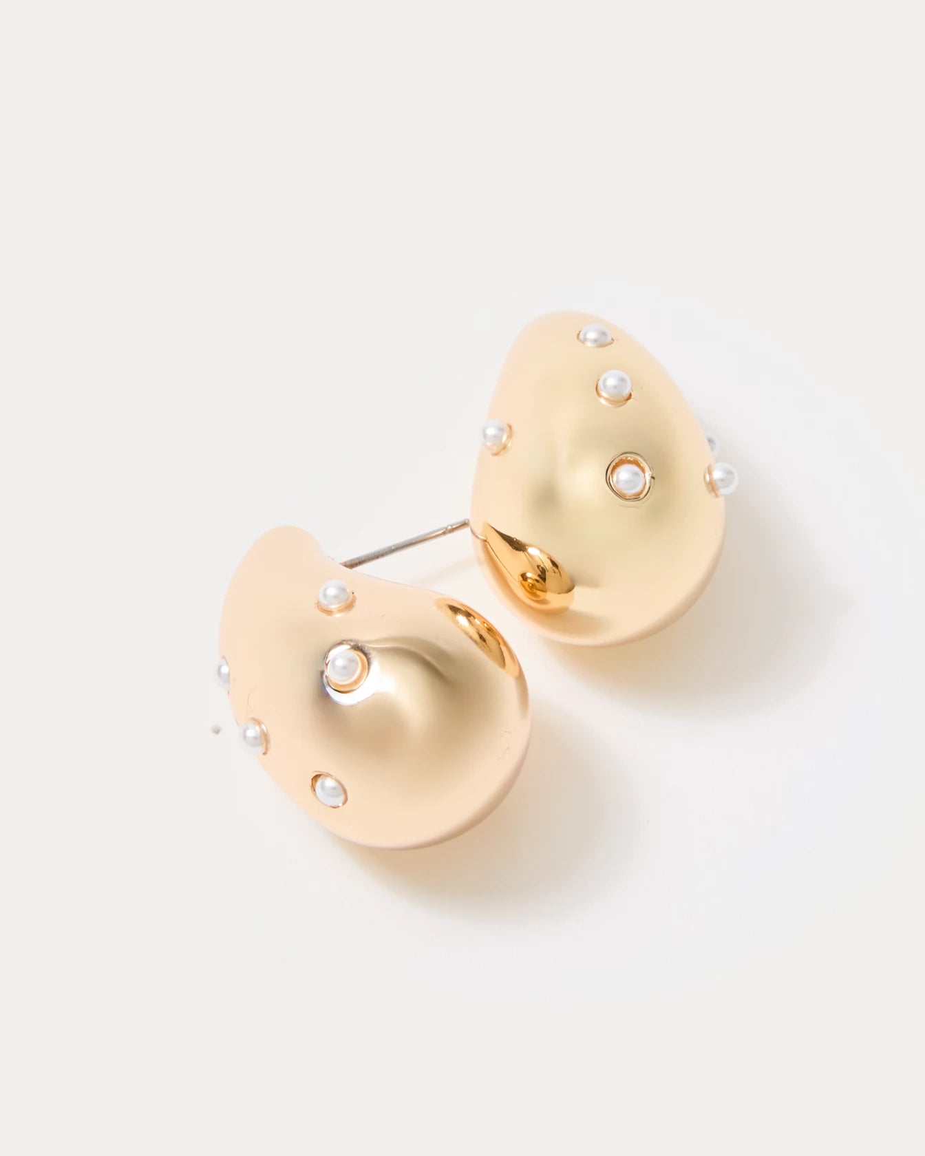 - Gold tear drop earrings with colored stones.