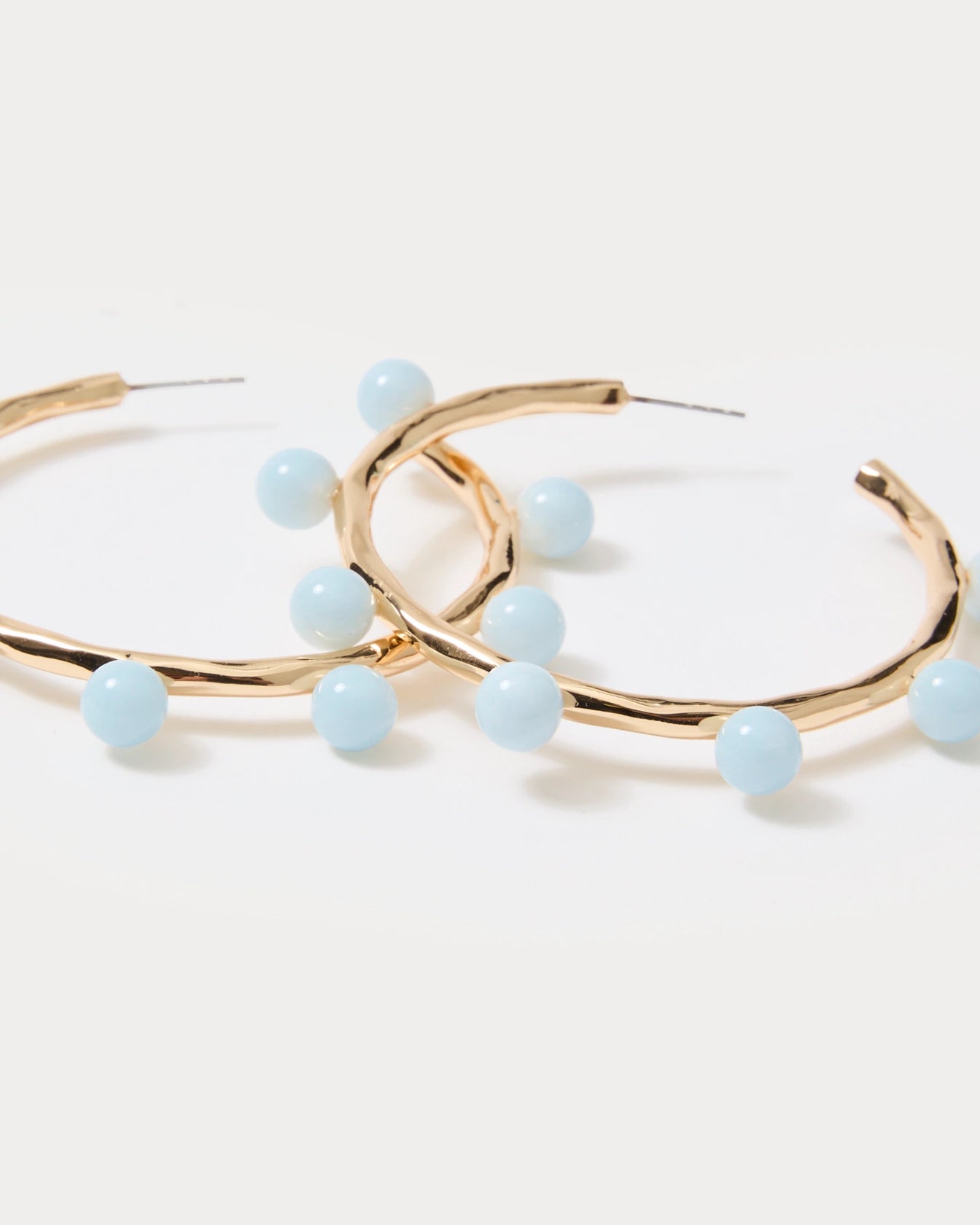 - Textured gold hoops with turquoise beads and a post closure.