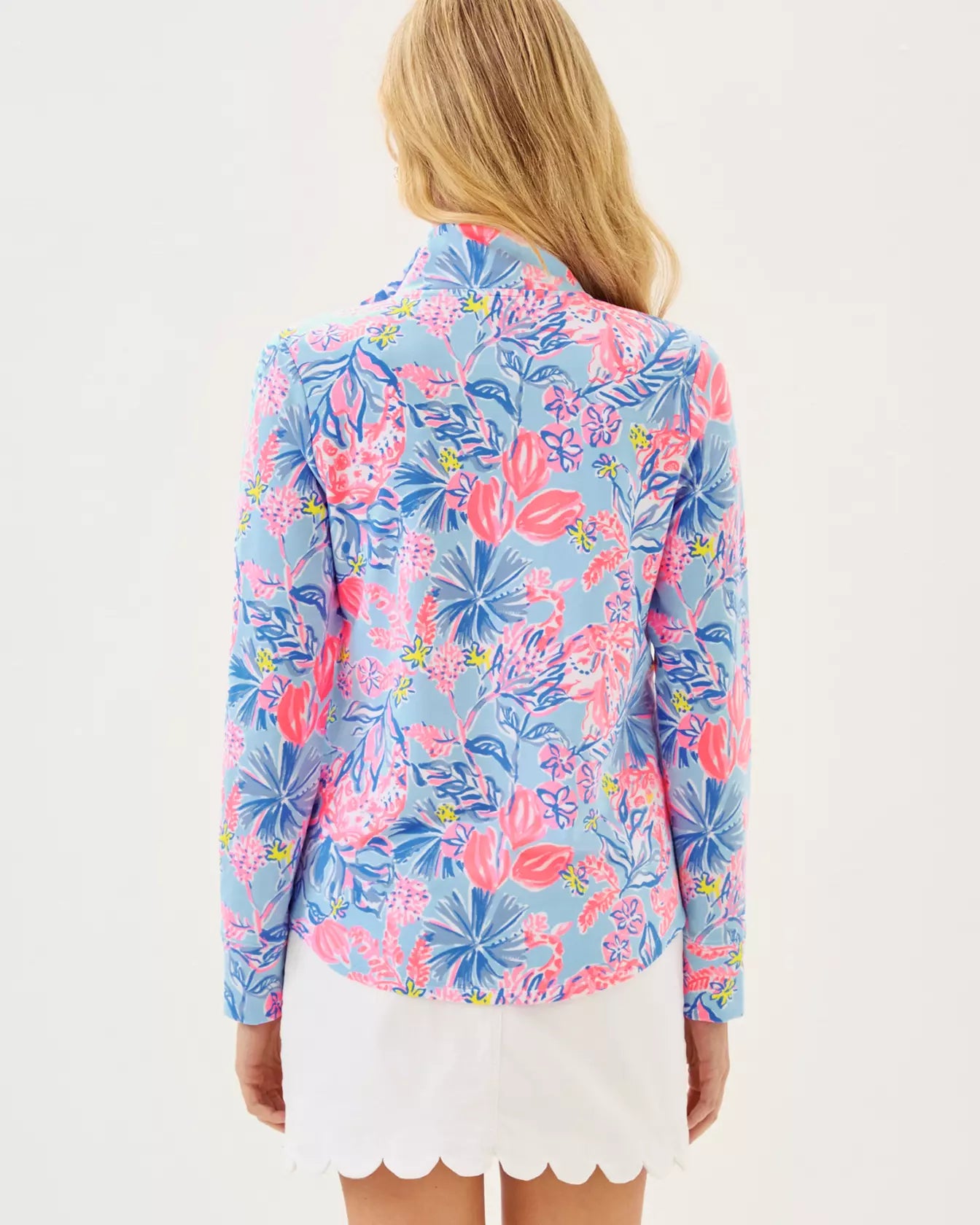 Made from Luxe Terry fabric, our Leona Zip-Up Jacket offers UPF 50+ sun protection and exceptional softness. Brightly styled in an eye-catching Lilly print, it's the perfect balance of sporty and feminine.