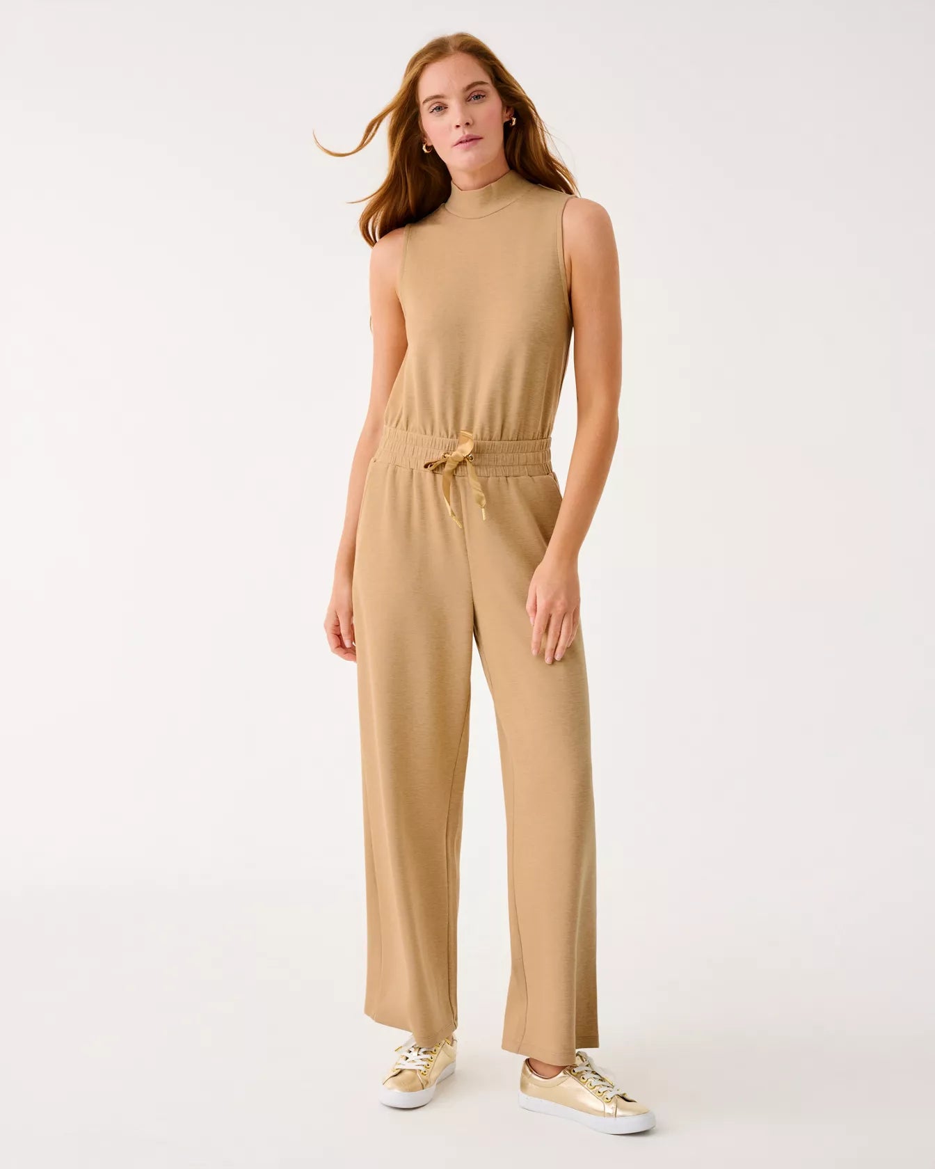 - UPF 50+ easy fit, wide leg jumpsuit with a drawcord waist and back zipper.