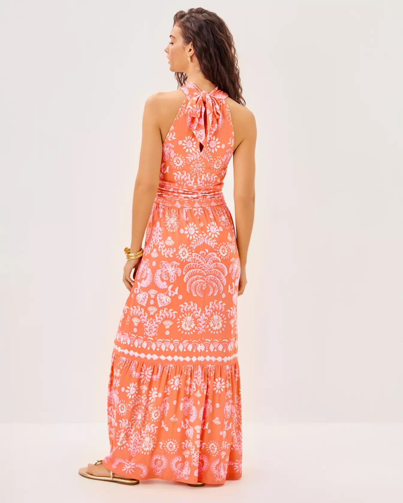 Soft and easy in printed jersey, the Montecito Halter Maxi Dress is made for warm summer days thanks to a tie-back neckline and ruffled hem that catches the breeze.