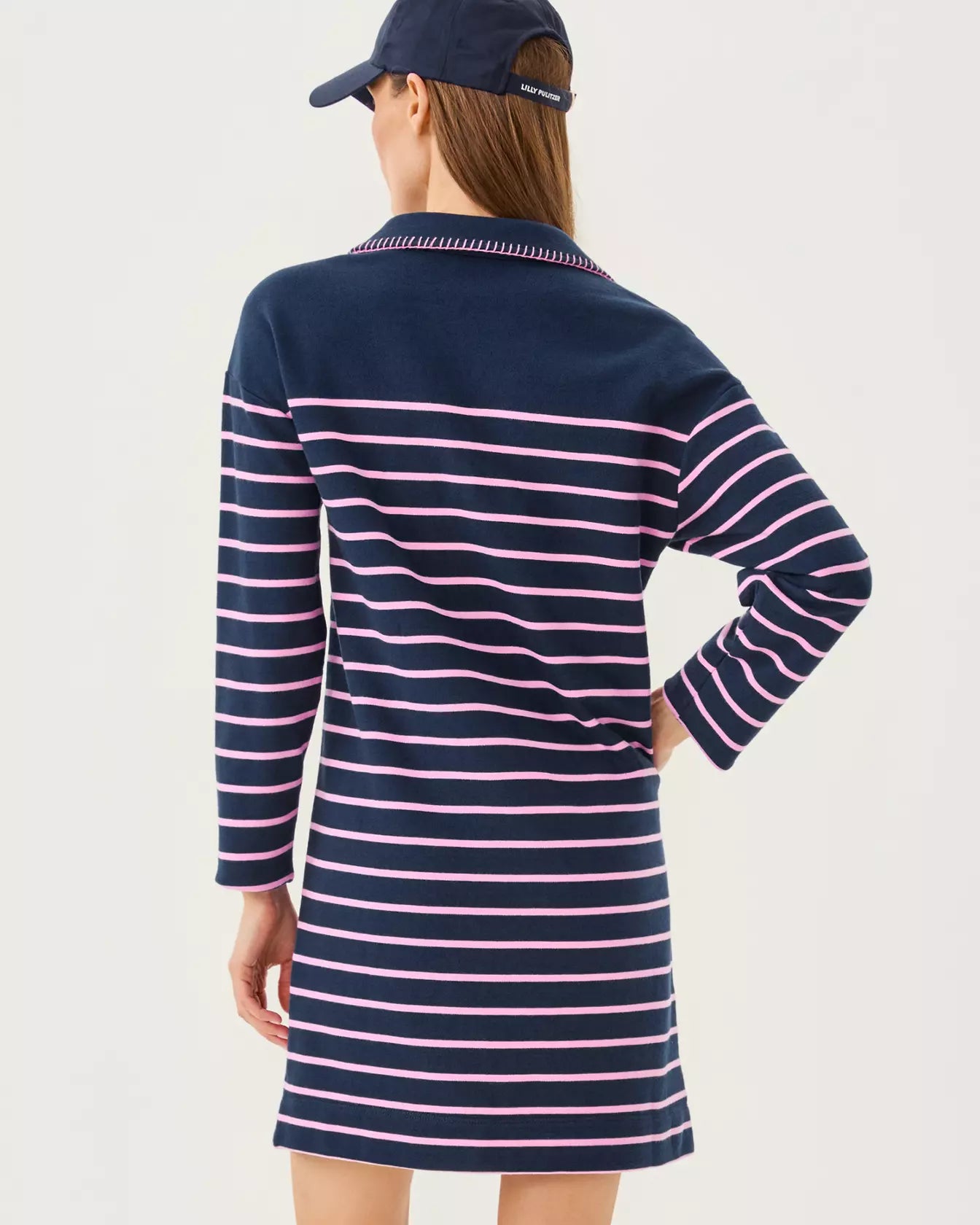 • Relaxed fit dress with a blanket stitch detail on the collar and placket and an embroidered logo on the chest.