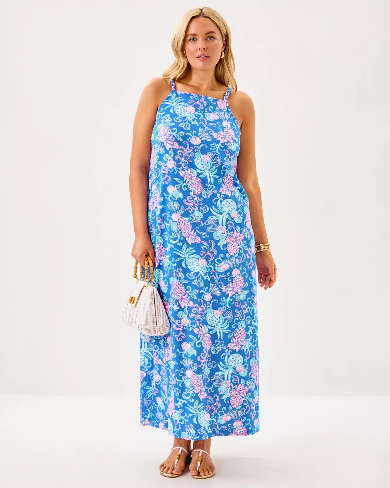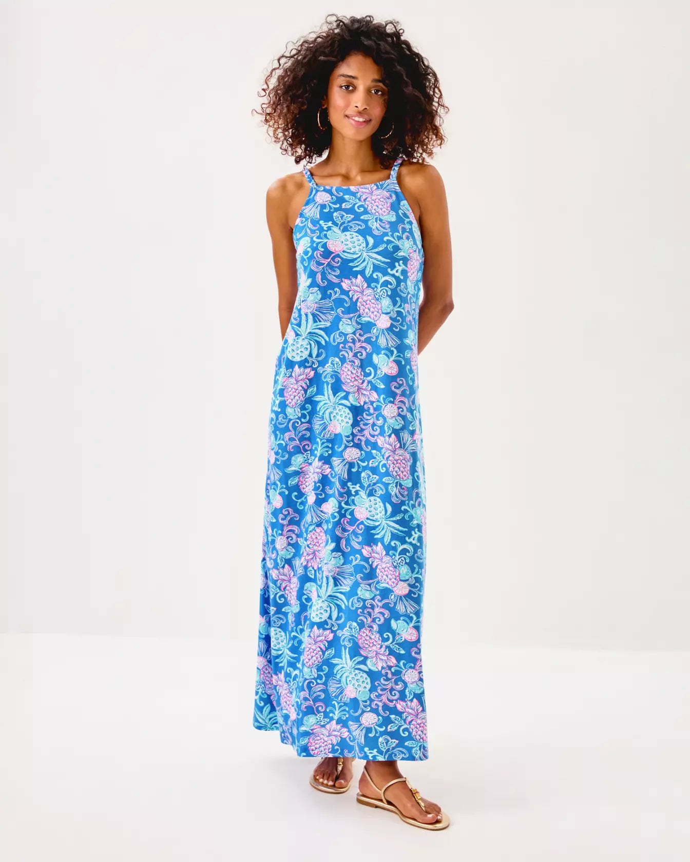 - Swing fit, sleeveless maxi dress with braided strap details at the shoulders.