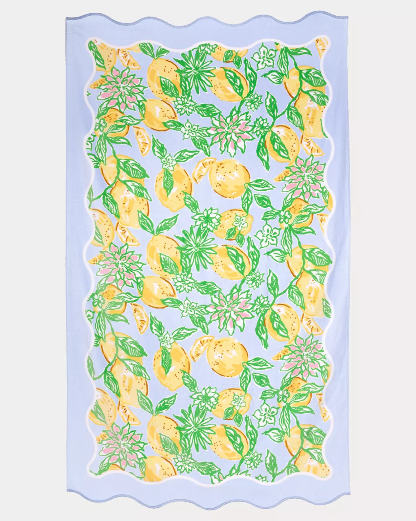 - Cotton beach towel with scalloped details.