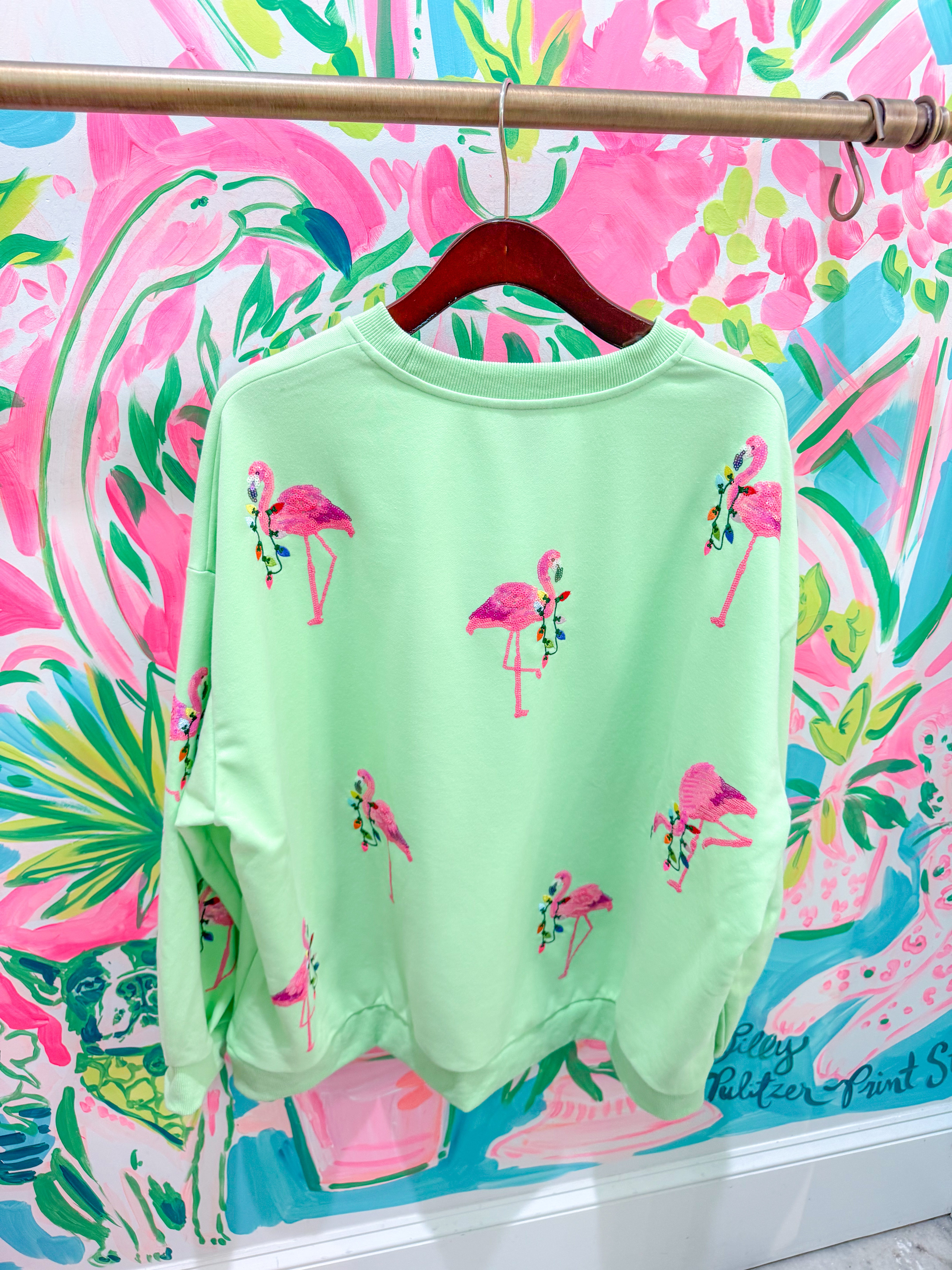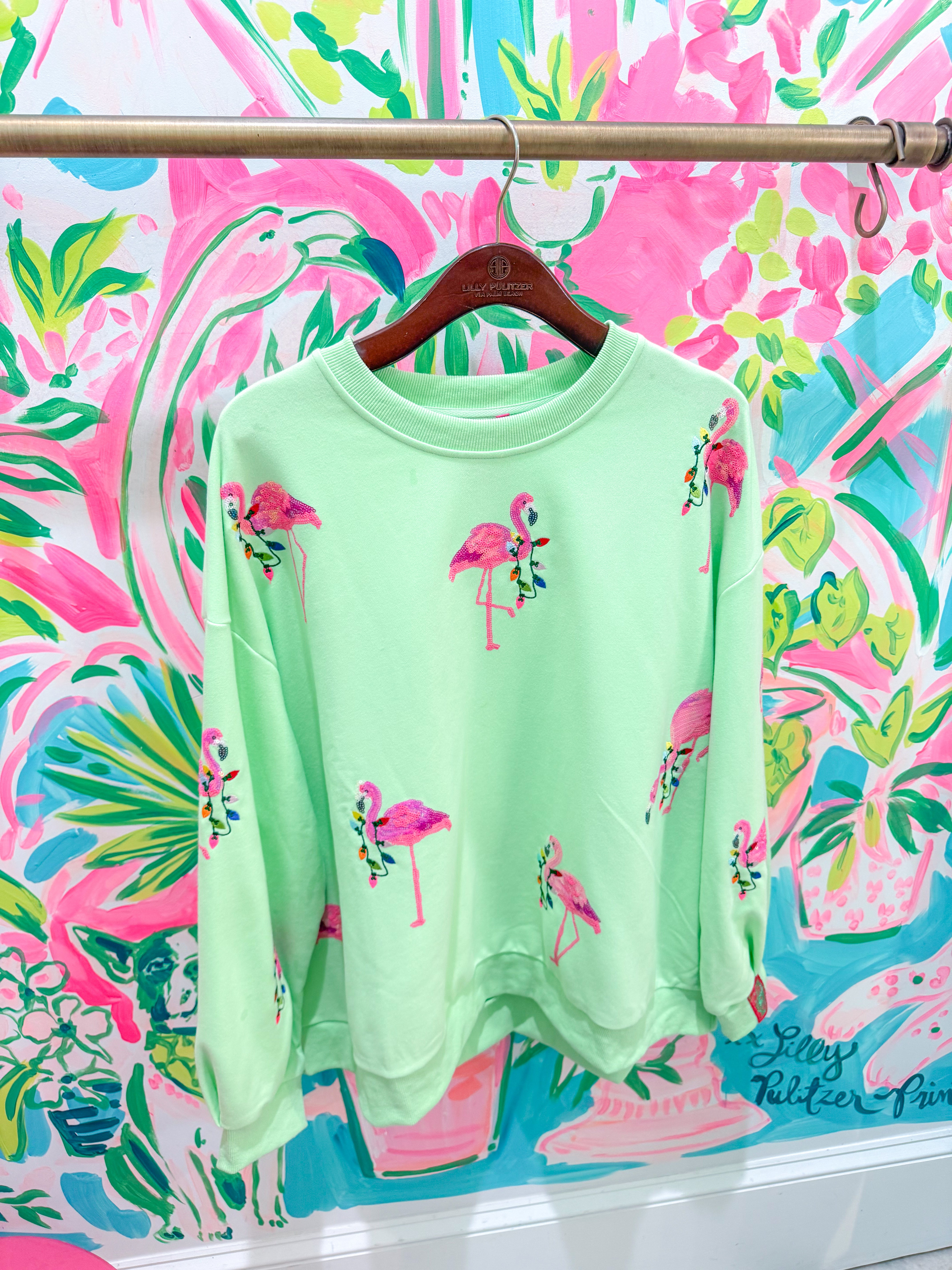 Mint Flamingo Wearing Christmas Light Necklace Sweatshirt