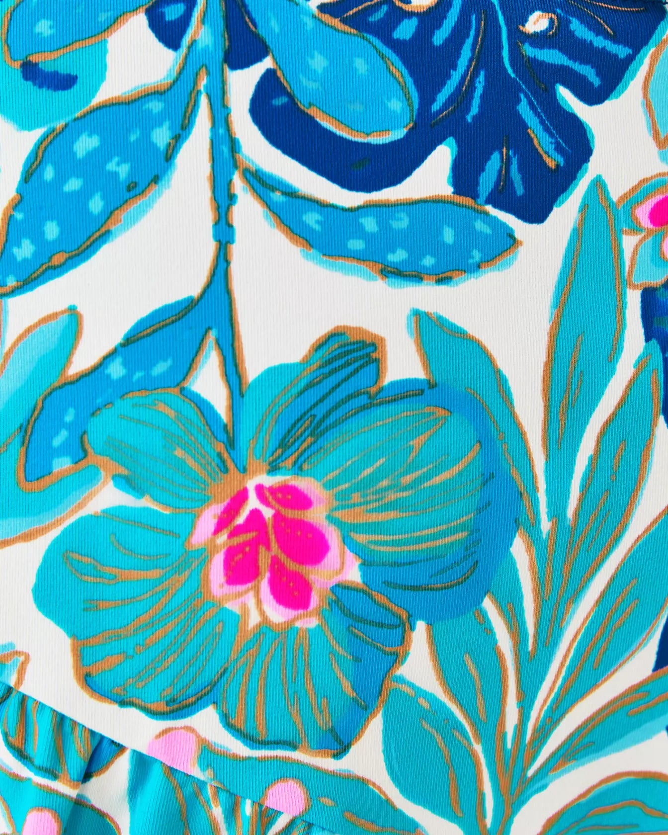 - UPF 50+ Luxletic® active skort with tiered ruffles and a pocket on the undershorts. Moisture wicking.